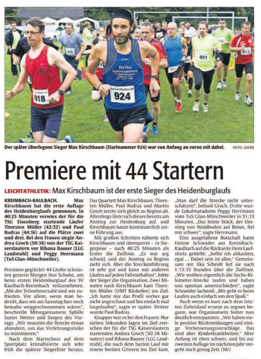 Veröffentlichung aus "Die Rheinpfalz" - Nr. 160 Westricher Rundschau-Lokalsport vom 14.07.2014 (Bild & Textquelle - Autor: Sven Holler)