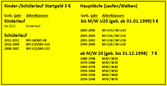 keine Ansprüche erheben, sollten mir durch meine Teilnahme am Lauf Verletzungen oder Schäden entstehen. Ausgenommen hiervon sind lediglich durch Vorsatz oder grobe Fahrlässigkeit des Veranstalters